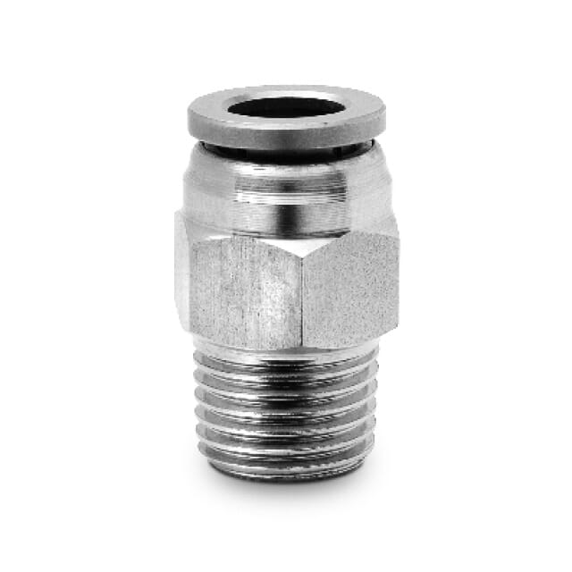 Konische gerade Einschraubverschraubung aus 1.4404 Edelstahl mit FKM Dichtungen (Lebensmittel geeignet).